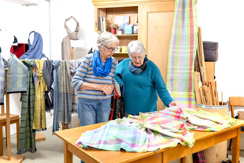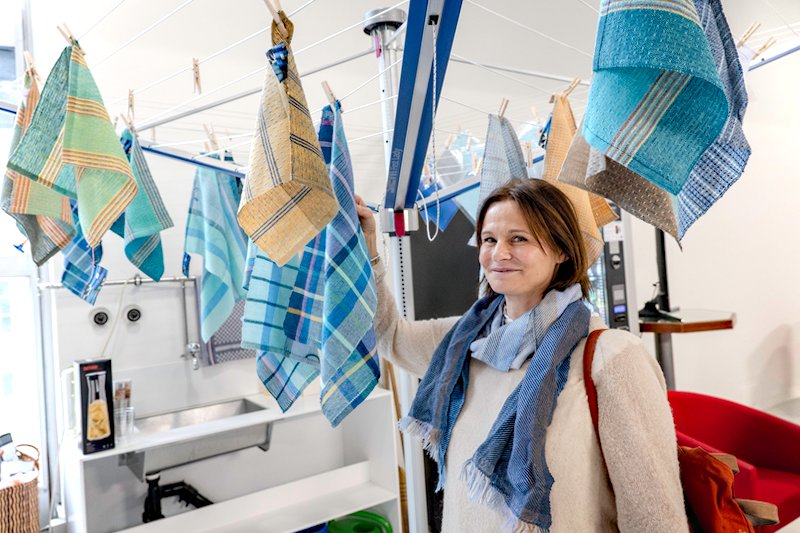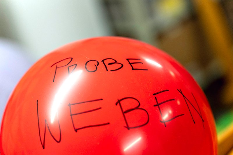 Der Besucherandrang war hoch, die Webstühle wurden mit Interesse bestaunt, das Probeweben an einzelnen Stühlen war gut ausgelastet und auch im temporär aufgebauten Kaffee im Foyer herrschte stets viel Betrieb. Der Wäsche-Stewi, auf dem die käuflichen, farbigen Webstücke elegant präsentiert wurden, war Ende der Veranstaltung praktisch leer.