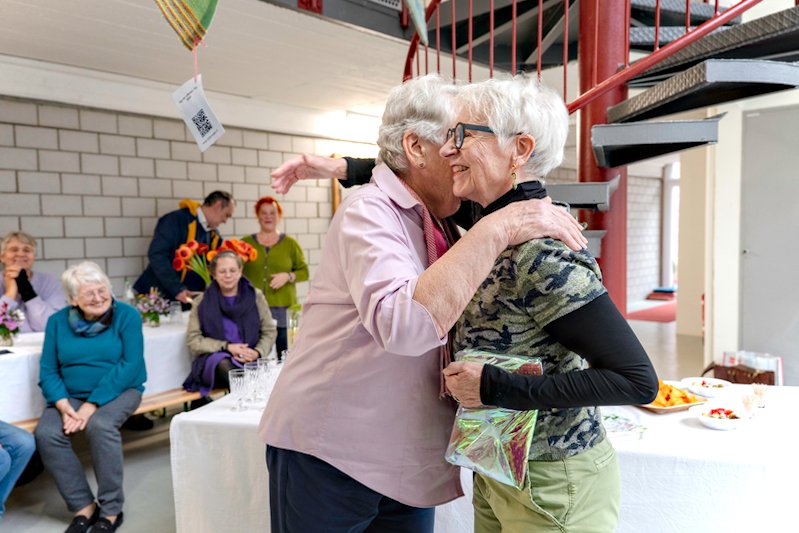 Ein Höhepunkt des zweiten Nachmittags war die emotionale Ansprache von Katharina Manz Schulthess, Präsidentin von Alzheimer Schaffhausen, welche die Vereinsgeschichte der Rhyfall-Wäbi zusammenfasste und zeitliche Parallelen zum eigenen Leben - von der Schulzeit bis zur vierfachen Grossmutter - machte: «dass für eine Wäbifrau die Welt plötzlich schief in den Angeln hängt» kann in einer so langen Periode schon vorkommen, doch die Webgemeinschaft trägt diese Mitglieder so lange es geht weiter. Dieses stille Engagement für demenzkranke Mitglieder wurde durch die Übergabe des «Fokuspreises 2024» von Alzheimer Schaffhausen, geehrt!